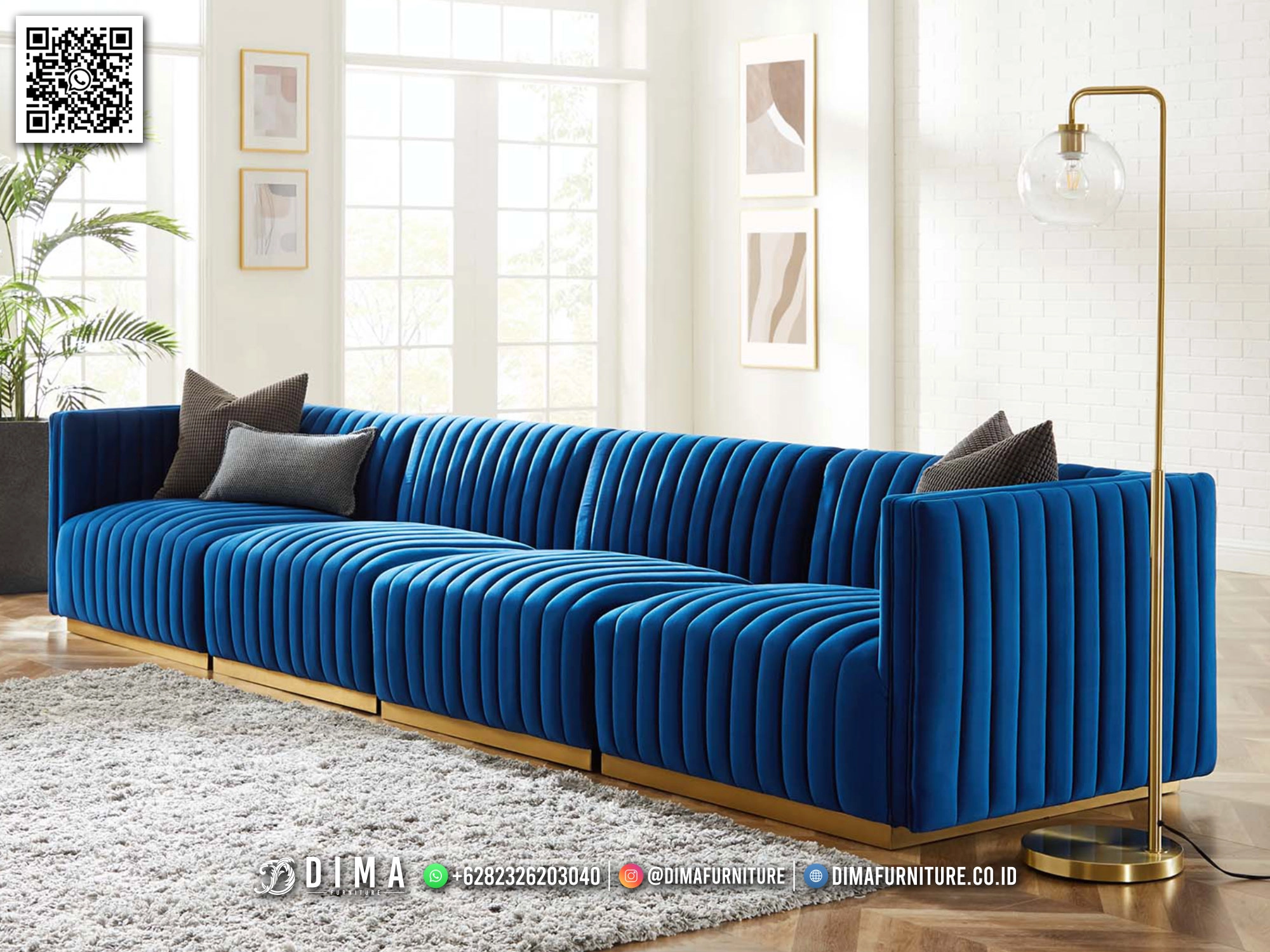 Material velvet atau beludru selalu identik dengan kemewahan. Sofa velvet sangat cocok untuk gaya interior glam, modern luxury, atau art deco. Kilauan lembut dari permukaannya membuat ruangan tampak hangat dan elegan. Pilihan warna seperti maroon, gold, atau olive green sedang banyak diminati.