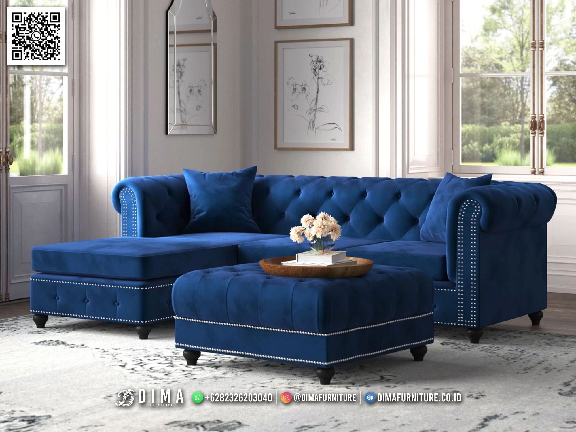 Sofa Chesterfield dikenal dengan desain capitoné atau kancing-kancing pada bagian sandaran. Model ini menawarkan tampilan klasik yang mewah dan cocok untuk interior bergaya vintage, classic luxury, hingga modern glam. Pilihan warna seperti emerald green, navy blue, atau brown leather membuatnya semakin berkelas.