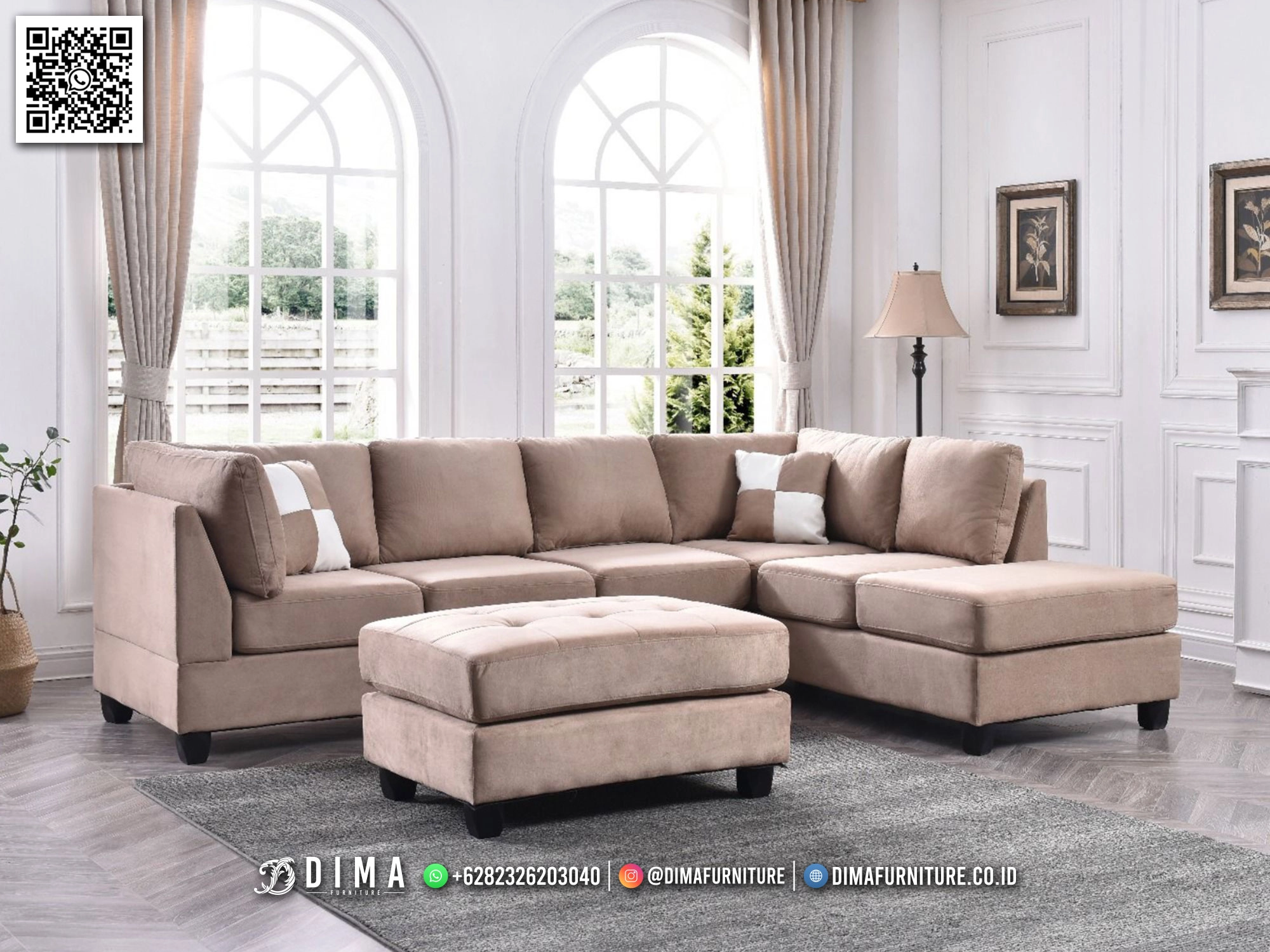Sofa bentuk L (L-shaped) menjadi favorit karena tampilannya yang modern dan memaksimalkan ruang. Model ini cocok ditempatkan pada interior minimalis, modern kontemporer, maupun Scandinavian. Meski desainnya sederhana, sofa L tetap memberi kesan mewah terutama dengan bahan premium seperti kulit, suede, atau kain woven berkualitas.