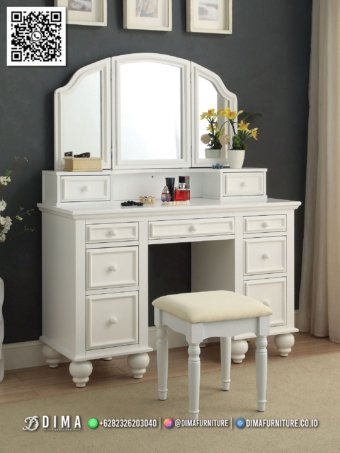 Meja Rias Cantik Putih Dima Classic Kayu Solid Jepara 50FI