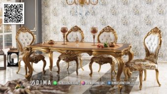 Set Meja Makan Mewah Emas Ukir Klasik Dima Furniture 28IM