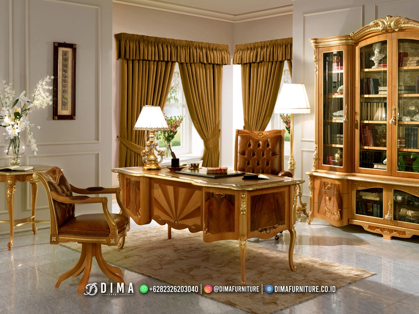 Meja Kantor Direktur Mewah dengan Sentuhan Klasik Berkelas