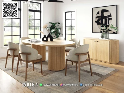 Kombinasi desain modern dan material kayu solid menjadikan set meja makan minimalis modern ini terlihat relevan untuk berbagai gaya hunian masa kini. Cocok untuk rumah baru, apartemen, hingga rumah dengan konsep open space.