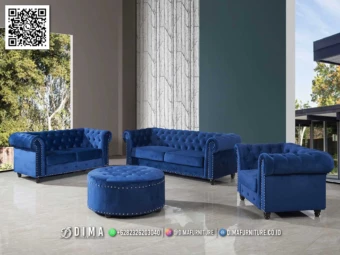 Set Sofa Tamu Mewah Klasik Blue Royal Elegan 24IM