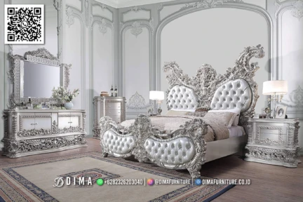 Tempat Tidur Ukir Mewah Grand Seraphine Silver Premium Sentuhan Luxury Yang Berkelas